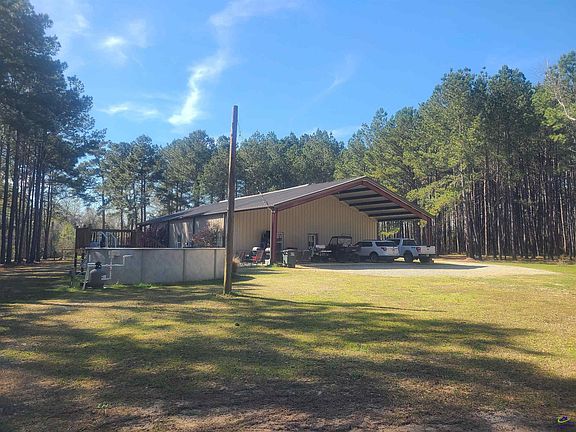 Rare opportunity to own a very unique property! Nestled away on 17.98 acres, this 3250 sq ft barndominium was built in 2019. The spacious, open floor plan and the split bedroom plan make this home perfect. The large living area boasts a brick fireplace with wood burning stove, and lots of windows letting in natural light. Dining area suitable for a family sized farm table, connects to the tremendous kitchen with granite island offering room for 4 or more bar stools. The beautiful kitchen has custom cabinetry, stainless steel appliances, farmhouse sink with window overlooking the wooded property. Master bedroom suite has private bath with tile shower, soaking tub, and double granite vanity. The walk-in closet connects the master suite to the laundry/mud room. The home also has two additional bedrooms and hall full bath. Extras include a half bath for guests, an office area, and storage closet. The upstairs attic space is completely floored and could easily expand for additional bedrooms, or flex space. Covered front porch and covered parking in the back. Above ground pool with deck. The property offers a small pond if you enjoy fishing, many trails, a deer stand for hunting, and a natural running creek. This home makes a perfect homestead with chicken coups, rabbit cages, and a variety of fruit trees. The property has the original 1110 sq ft block building that has become a workshop, complete with power, water, a kitchen and half bath. At the main entrance to the property, behind the gated entrance, a 15x28 quality built shop currently serves as a beauty salon. It could very easily be converted to a small apartment or in-law suite, or even an investment property. The entire property is very well maintained and absolutely beautiful. Step away from the hustle and bustle of everyday life and come home to peace, quiet and privacy of this secluded property.