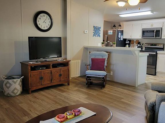 Welcome to Cypress Creek Village, one of the newest 55+ active adult communities...and pets are welcome! Here you own the home, but not the land. You pay a monthly lot rent for the land which allows you and your guest access to the community amenities. The monthly lot rent for this home is approximately $ 467.00........... This home is calling you! Bring your swim suit and start living your Florida dream. The seller is leaving the golf cart & both bicycles!.......... Immaculate, fully furnished, 2006 double-wide featuring 2 bedrooms, 2 bathrooms, open concept living and split-bedroom floor plan. There is even an inside laundry! The entire interior has been painted and sports beautiful laminate flooring in the living/dining area as well as the owner's suite..................... October 2021 - NEW ROOF.................... Beautifully furnished, this home has been lightly lived in and very well maintained. The heart of the home is truly the spacious living room overlooking the kitchen that is equipped with stainless appliances and newer washer/dryer in the laundry. Entertain at the breakfast bar or enjoy a card game in the dining room. .......... Enjoy your morning coffee or evening beverages in the private lanai. This room is so peaceful and has plexiglass windows, shades for privacy and an exit door that leads to the attached storage shed............ The guest bathroom sports a walk-in shower and allows access from either the kitchen or the guest bedroom. Your guests will appreciate the size of the guest room. There's even more storage in the walk-in closet........... The owner's suite is fantastic. Bring your king size bed, this room has lots of space to accommodate. The closet is very wide. The attached bathroom features a very large vanity and a wonderful garden tub/shower combo..................... Priced to sell - do not hesitate!..................... Cypress Creek Village is a beautifully landscaped pet-friendly, 55+ community located in a rural location in East Winter Haven. Just minutes from Hwy 27 and within 5 miles to downtown Winter Haven it is tucked away and surrounded with scenic pasture land and orange groves!..... This community offers a variety of events, planned activities & trips, entertainment such as bingo, water aerobics, shuffleboard, games & social gatherings, and much more. The amenities include a community clubhouse, ,ovie theater, heated pool, whirlpool spa, shuffleboard, horseshoes, pickle ball, billiards room and a lending library....... LEGOLAND and Bok Tower are just a short drive, Disney & Orlando attractions are less than an hour away. Shopping, restaurants, medical and multiple golf courses are close by, and Cypresswood Golf course is right across the road!.................... Come join us at Cypress Creek Village - you'll be happy you did!