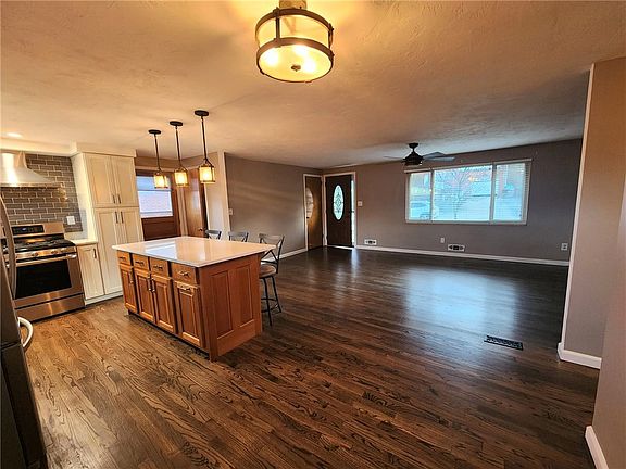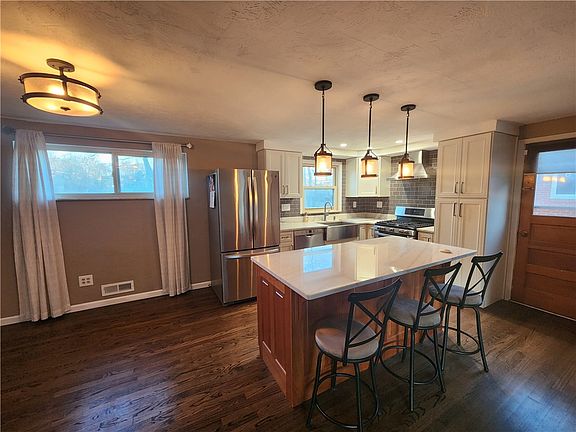 Welcome home to 715 Riehl Drive in the Keystone Oaks School District! This adorable, move-in ready brick home features an amazing newly remodeled open concept main living area. The stunning eat-in kitchen has gorgeous quartzite countertops, stainless steel appliances, ceramic backsplash, loads of storage and farmhouse sink. The large island with storage has room for seating and the spacious dining area has plenty of room for a table & chairs. Inviting refinished original hardwood floors throughout the main level. Family room is light & bright with a large picture window and new front door. 2 bedrooms and a full bath with skylight complete the main floor. The lower level is finished with vinyl flooring, a second full bath, washer, dryer and ample storage. The level backyard is fenced in. New gas line to road. Great location! AHS Shield Home Warranty included.
