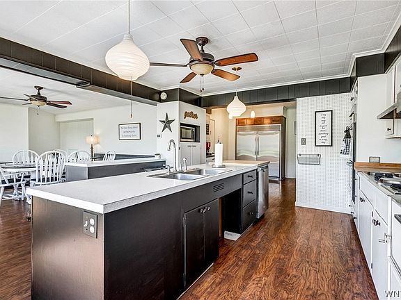 - Ceiling Fan(s), Separate/Formal Dining Room, Entrance Foyer, Eat-in Kitchen, Separate/Formal Living Room, Home Office, Pantry, See Remarks, Sliding Glass Door(s), Second Kitchen, Natural Woodwork, Bedroom on Main Level, In-Law Floorplan, Main Level Primary, Primary Suite, Workshop