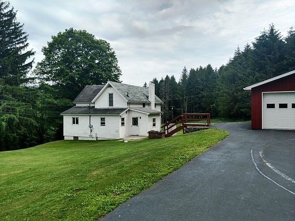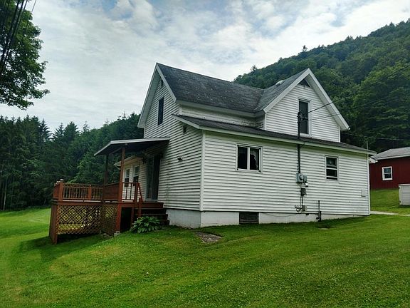 Riverfront property on the famous West Branch of the Delaware River. Perfect recreational property or second home for those looking to enjoy first class FLYFISHING in the CATSKILLS. The home is in great condition with a newer roof, vinyl siding, forced hot air heat and clean SPRING water. Two bedrooms and a full bathroom upstairs. First floor features a mud room, separate laundry room, large eat in kitchen, family room, full bathroom and second living room which can double as a third bedroom. Over sized 24x48 detached garage for your toys and a separate 12x28 utility shed. Paved driveway and elevated views of the river from the front porch with NO neighbors in sight. All on approximately 8 acres of meadow and small wood lots. Two minutes to the Village for all your conveniences!