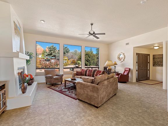 Fantastic Opportunity to Come to Sedona and escape the big city problems. 3 bedroom 2 1/2 bath home with nice upgrades is situated in one of the most sought after areas in West Sedona where short term rentals are allowed. Large Kitchen with Lots of Cabinets , Big Paved Covered and Uncovered Back Yard Patio with Privacy Fence. Split Floor plan boasting a huge master with dual sinks, separate shower and tub and double closets. Dining Room, Gas Fireplace, Breakfast Nook, 2 Car Garage, Natural Gas, City Sewer, and big beautiful Red Rock Views! All furniture and personal property is available under a separate bill of sale. With Low Interest Rates and Fresh Air - escape from the madness of bug city living -now is the time to buy in Sedona! View 3D Tour now!