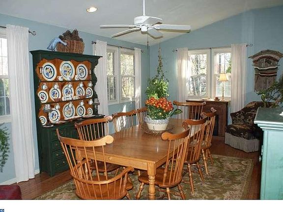 Welcome to this charming 4 bedroom, 2.1 bath Colonial Home. Updated Kitchen with large Island flowing into a spacious Family room with brick fireplace. Step through double sets of French doors into the spacious Dining room to entertain for the Holidays which leads to a large deck. Living room with French doors and lots of sunshine, Powder room, 1st floor Home Office with 2 car Garage access complete the 1st level. Second floor offers a Master suite with updated generous Master bath, walk-in shower and closet. Three additional Bedrooms and a full Hall Bath. Property is lined with mature trees, professional landscaping, and fenced-in yard. Partially finished Basement with a walk out patio leading to the in-ground pool. Roof, Gutters, siding all new in 2015. Hardwood floors through out the 1st floor.