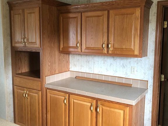 This manufactured home comes with 3 bedrooms, 2 full bathrooms, and a 9 foot high crawl space, of which could be converted to a basement. The entrance includes a small deck with a ramp. The back features an 8x8 deck overlooking a large backyard. It has a front circle drive and is immediate possession. The seller's will escrow up to $2,000 for carpet/paint allowance upon closing if necessary.
