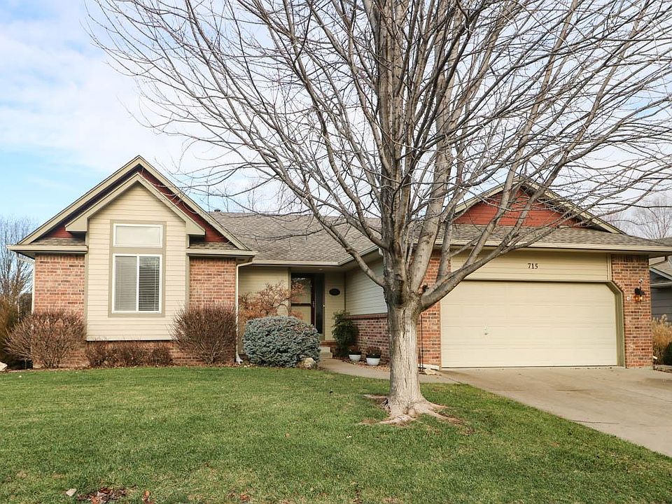Walk right in to fantastic living space with newer laminate flooring in living and kitchen, a tiled dining and entry, and approximately 1 year old carpet and pad down the stairs and into the family area! 4 bedrooms currently but there is great opportunity for a 5th with a daylight window, carpeting and pad purchased and electric outlets already installed! Kitchen is applianced and comes with fabulous above and under-counter lighting, an eating bar between kitchen and dining with a single entry access door! Enjoy your mornings or afternoons on the wood deck which walks down to a covered patio for your entertainment or privacy purposes! Double sinks and soaker tub (plus separate shower) will delight you in the master bath and the huge walk-in closet will definitely catch your eye! Outside, employ the automatic sprinkler system for your dynamic landscaping adventures on this partially fenced yard and make note that there is irrigation in the flower beds too! Lots to love in this walkout ranch home in a superb area on the south side of Derby! Check it out and we think you’ll make a positive decision!