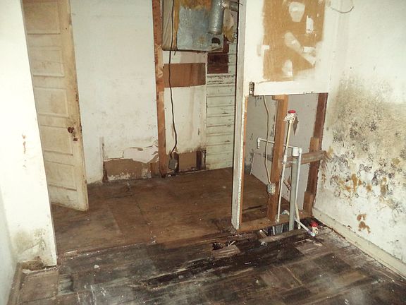 House sits on a nice sized lot (50 x 140) with access via an alley in the back. Front room has a vaulted ceiling. House has good bones but needs a lot of work.