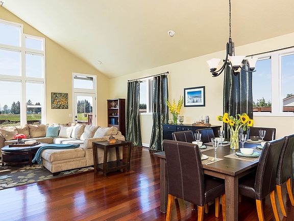 Light & bright home in Junction City's Raintree Meadows. Soaring vaulted ceilings, an open concept living area and natural light flowing through large windows. Gourmet kitchen includes eat-in bar, granite countertops and cherry cabinets. Other features include a large master suite with walk-in closets and a bath w/dual vanity. Abundant storage in unfinished bonus room. RV parking, sprinklers, fully fenced, views and a park nearby!