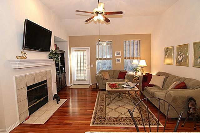 LOW MAINTENANCE LIVING AT ITS BEST! Elegant Villa facing golf course and common area with hardwood floors in Study and Family Rm. Wall-mounted flat screen TV remains with home. Upgrades include: elegant lighting fixtures, crown molding in Study, Dining and Master Suite, storm doors, quartz kitchen counter tops, extra deep, undivided granite kitchen sink with oil rubbed brass faucet, Deco-Roman shades in Master bath, and new hot water heater. Brokered And Advertised By: RE/MAX Town & Country Listing Agent: Kevin Kernan