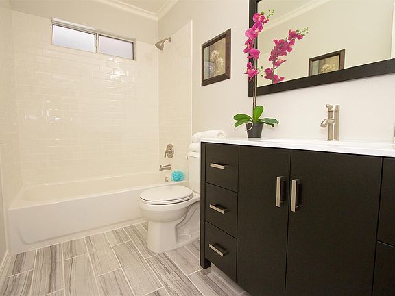 Beautiful refreshed home on an expansive 1/3rd acre lot that boasts a one-of-a-kind pool and spa and expansive hardscape for summer barbecues. Too many updates to list, including newly remodeled kitchen with new Daltile® subway-tile backsplash, quartz countertops, and Shaker-style cabinets. Brand new distressed-lumber laminate flooring throughout common areas, ivory and charcoal grain tiles and subway-tile surrounds in bathrooms, and designer-curated paint and lighting package. You'll want to call it "home" the moment you step inside!