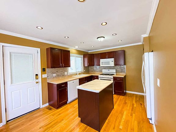 Move in Ready Split Level Beauty with rarely available 3 full baths IS READY FOR NEW OWNERS. Main Level Features traditional Living and Dining Room, oak flooring (on Main and Upper Level), Crown molding. Large open Kitchen with Cherry wood cabinets, island, appliances and disposal less than 5 years old. Kitchen Backsplash was installed just a few years ago. Three Bedrooms on Upper Level, including Master Suite with Ensuite Bathroom with Vanity Sink & Tub/Shower Combo. 2nd Full Bathroom on 2nd Floor in Hallway. All three bathrooms in the house are remodeled. Large and Spacious Lower Level Family Room Features JL audio surround sound system, wood blinds, Exterior Excess and Third Full Bathroom. This area also has Great potential for in-law arrangement. Laundry area has a convenient sink and lots of cabinets. You will NOT Have to Worry About Roof (new in 2019), Furnace, Air conditioning, Water Heater all in 2015, Side and Back doors and all Storm Doors are less than 5 years old! Double pane high efficiency windows. Updated electric panel. Recessed ceiling lights add lighting to all rooms and bedrooms giving you the feel of being bathed in sunlight. Key less deadbolt & Alarm system. Beautiful large and peaceful backyard with Privacy Fence. Patio is Perfect for Entertaining and BBQs! Desirable quiet neighborhood - Really close restaurants, shopping mall and more! Come to see and make it your own!