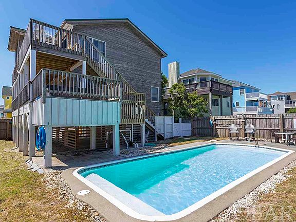 REDUCED!!! SEMI-OCEANFRONT opportunity in Ocean Sands, Section Q!! Charming SEMI-OF BEACH COTTAGE just steps from the Atlantic ocean!! Well maintained two-story home with multi level decking, HUGE salt-water pool 13x30, hot tub, screened-in porch and many improvements!! This home is loaded with character w/the beamed ceilings, wood accents & cedar shake siding! The upstairs features a bright & sunny open concept living, dining, kitchen, renovated power room, PLUS office/den! Recently replaced lovely LVT flooring!! Just off the great room is the screened porch, with decking on both sides perfect for relaxing and enjoying the lovely ocean views! The lower level features a private suite with access to the ocean side decking along with three other bedrooms and the full bath in the hall! Recently replaced lovely oak stairs! Convenient dry entry from ground level! Outdoor shower plus extra storage on ground level! Upstairs HVAC replace 2016. This is a must see! RENTAL PROJECTION by SUN REALTY - $69,818.00 INSURANCE: GR Little- HO $1800; Wind/Hail $3200; Flood (Zone X) - $950