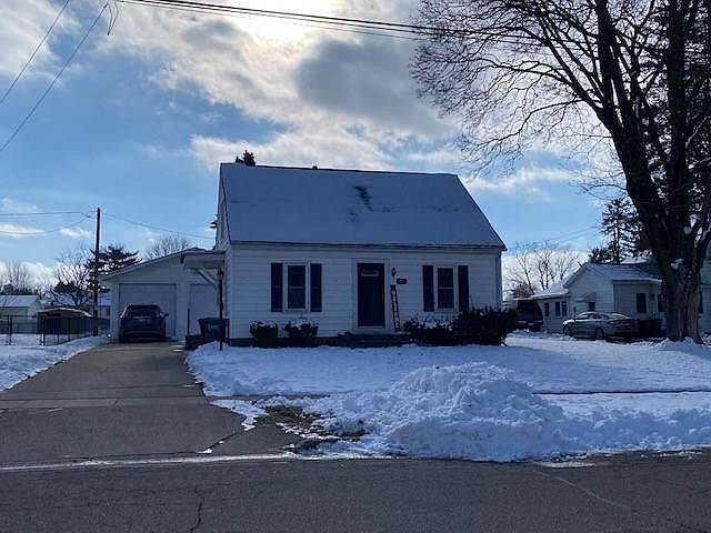 Cape Cod style home. The main level offers a kitchen, dining room, living room, full bath, one bedroom (currently used as a laundry room). The upper level has 1 bedroom and a landing area. Newer LVP flooring, fresh paint, newer windows. New kitchen sink. Exterior has vinyl siding. Large, 4-car garage, partially fenced yard.