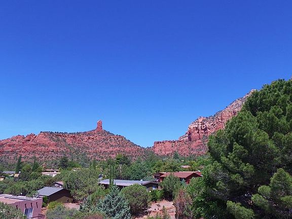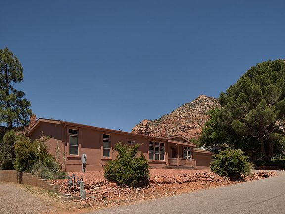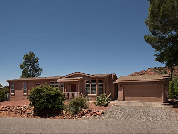 Want to watch the sunsets on Chimney Rock, Thunder Mountain & Lizardhead? Look no more. Views from Kitchen, backyard, Dining and Great Rooms. Privacy backyard, partially fenced with bird sightings, nature. Close to hiking trails, this 3BR, 2BA, 1455 SF, 2007 constructed manufactured stucco home, on .28 ac. is the answer to living in W. Sedona with VIEWS! at an affordable price. Low maintenance yard is a plus, along with site built 2+ car garage. Kitchen has double viewing window, stainless steel appliances, woven Roman shades, recessed lighting, and more. Exterior painted in 2016. Upgraded ceiling fans, recessed lighting, all appliances included. Custom window coverings and sun screens where needed. Close to hiking trails and town. Move in ready.