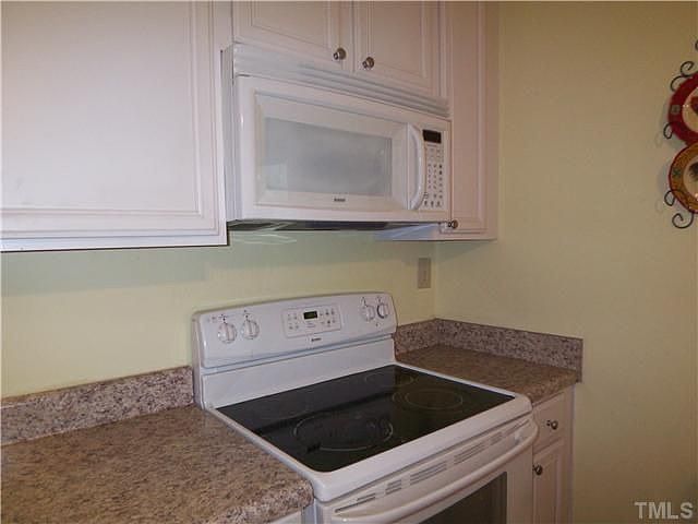 Great updates! New 42" kitchen cabinets, counters, faucet & appliances 2007. Pantry and island added -- unique in this community! Hardwood floors kitch, dining and hallways. Smooth top stove; microwave. Half-wall between dining and living rms for more open flow. Master bath extended for larger vanity. Private rear patio; wooded view. Quiet interior location. New roof 2010.