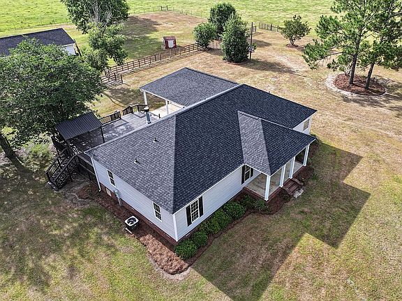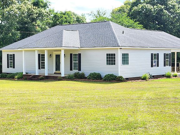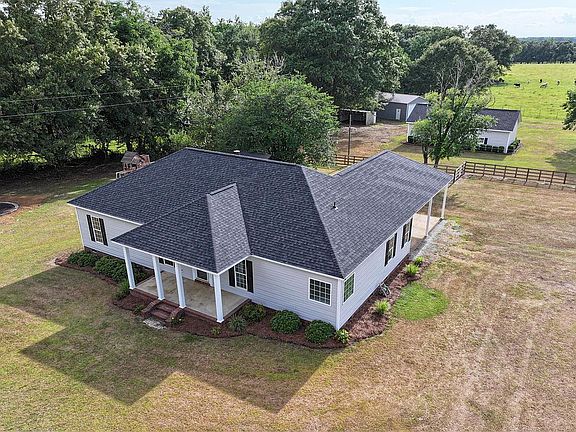 This move-in ready 4BR/3BA 2,046 sqft home sits on a beautiful 5 acre property, surrounded by expansive fields of cotton, peanuts, and cattle. On the back side of the house is a two car carport connected to an expansive wooden deck, perfect for relaxing in the late afternoons and watching the sunset. The kitchen has been updated with beautiful quartz countertops and new dishwasher. The master bedroom is spacious and easily accommodates a king sized bed. The master bath features separate sinks and his and her vanities, a large garden tub and separate tile shower. All three guest bedrooms are spacious and perfect for hosting guest or the growing family. The two guest bathrooms have identical layouts that offer a separate showering space. The living room features a corner wood burning fireplace and refinished hardwood flooring. There is a large utility closet off the kitchen great for pantry overflow and maximizing storage space. This home also offers a cozy home office perfect for creating the peaceful work environment or homeschool study.
