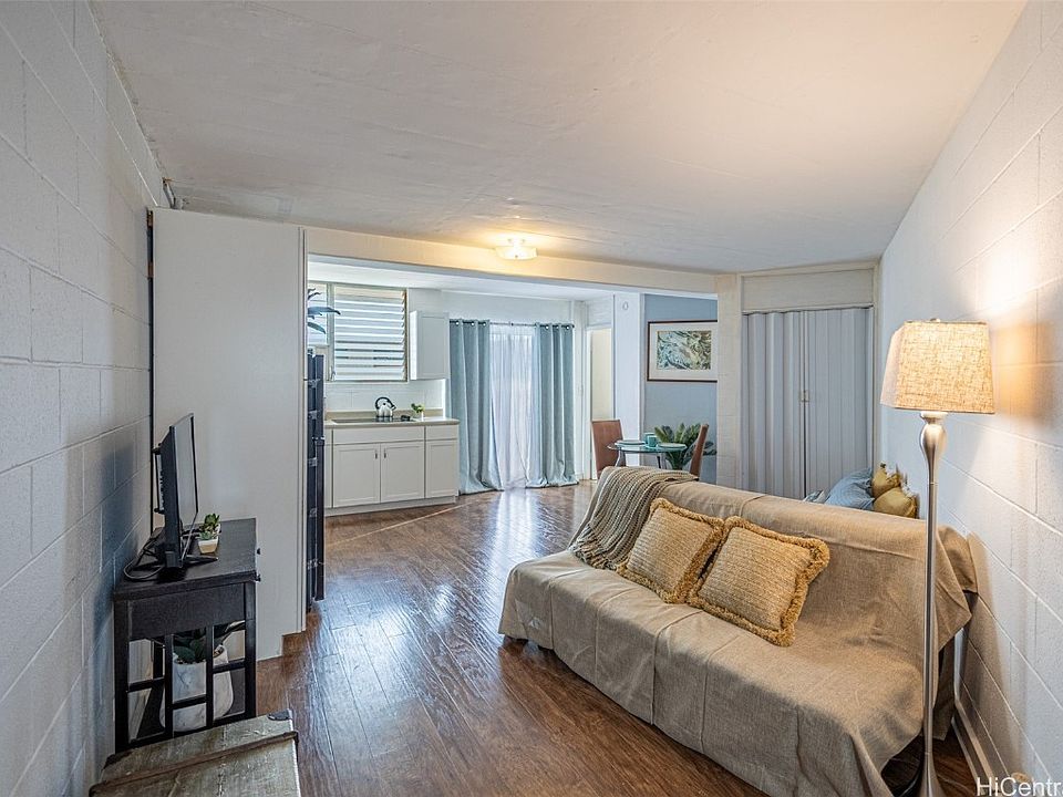 Enjoy an easy commute with this centrally located condo! Low maintenance fees, parking space, and location make this studio a perfect, budget-friendly home. This condo has an extra large lanai with a utility sink and a clothes washer, plus room for storage, and room for seating. Large bathroom features a lovely shower and bath with intricate tile work. The square footage easily allows for sofa, bed, and dining area. You will love this beautiful and airy studio!