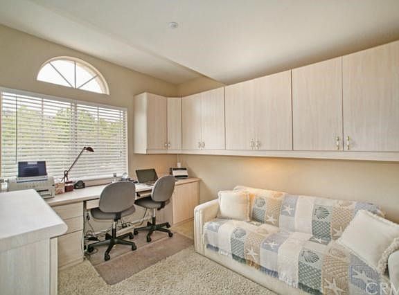 Beautiful Vilamoura home in the hills of Rancho San Clemente. Panoramic ocean, Catalina, sunset views! Entertain in over- sized gardens with fruit trees, patio, deck, gazebo, fire pit, & seating wall while over looking breathtaking views! This end unit has a light & bright open floor plan with cathedral ceilings, custom mirrored walls, 2 fireplaces, & extensive ceramic tile flooring. Generous kitchen with bar/counter opens to ocean view dining room. Master suite includes romantic fireplace, custom mirrored walls, & opens out to balcony with expansive ocean & city light views! Second office/bedroom has been finished with custom built-in desk, drawers, cabinets, & mirrored closet. A large loft area can be utilized as a game or TV room while looking out to the blue Pacific. Note the convenient 2- car direct access attached garage with built-in storage. Low HOA dues & no Mello Roos taxes. Includes fire insurance, trash, exterior paint, roof, decks, roads, & landscaping. Vacation-like living with community pool, spa, sunning areas, BBQ's, showers, restrooms, & nearby hiking & biking trails. Just minutes to San Clemente's finest beaches, shopping, & freeway access.