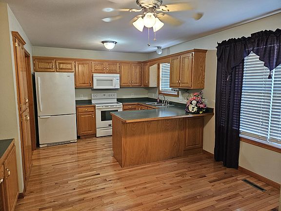 Phenomenal three bedroom two bath home in Aurora nestled in a quiet neighborhood. This home is located on a nice corner lot and has a low maintenance exterior. The living room is and open to the dining/kitchen area. The kitchen features beautiful hardwood floors and all of the appliances stay including the washer and dryer. All of the bedrooms are nice sized and the primary bedroom features a large walk in closet and a walk in shower. The back yard features a wooden privacy fence and a great storage shed complete with access to electricity. Call today to set up your private showing.