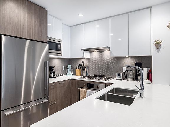 Welcome to Creston by the award winning developer Pennyfarthing! This 2 bed 2 bath open concept floorplan boasts 927sqft of spacious living space. This impressive home presents radiant heat throughout, over height ceilings, expansive windows, gourmet kitchen incl. high-end appliances, gas stove, quartz counters & soft close cabinetry. The living room flows directly onto the large balcony (with gas) , perfect to relax in the afternoon. Bedrooms are on opposite sides for maximum privacy, both with WIC, the master with spa-like ensuite & custom Cali closets. Flex space, secure parking and storage complete this fantastic home. Located close to North Vancouver's desirable trails, transit, shopping, Lower Lonsdale & more!