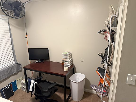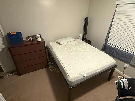 The living room features ample space and connects directly to the dining room/ kitchen, which includes a dishwasher. The bedroom is a comfortable size of 11 ft. 11.5 X ft. featuring a full size bed, adequately sized closet, dresser, nightstand, desk, and personally mounted ceiling fan that I'm leaving behind. There is also abundant room under the bed for storage. A full bathroom & shower are located upstairs by the bedroom, while a half bathroom is conveniently located downstairs for guests. A full size washer and dryer is located downstairs. There are 3 closets throughout the common areas providing plenty of storage for 2 people.
