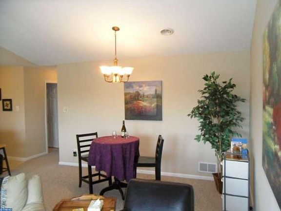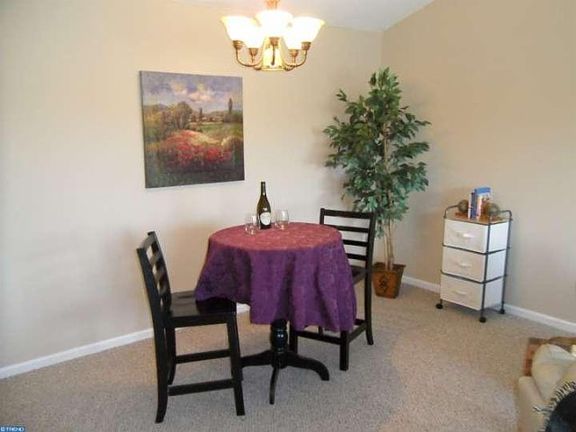 Spacious and sunlit Contemporary unit ready to move right into! This freshly painted and newly carpeted 2 BR 1.5 bath flat is set back in a community w/ rolling hills and open space. Foyer entryway has a convenient coat closet and carpeted stairs leading up to a grand living area w/ cathedral ceilings and expansive windows. The oak kitchen has all the amenities of self cleaning oven, and microwave, and breakfast bar. The MBR opens to a full bath, and has a walk-in closet, as well as its own deck overlooking serene open space and a line of trees. There is also a second bedroom and a powder room w/washer, dryer and shelving. Loads of parking and great location w/ quick access to Rte 309's corridor of shops and restaurants. Unpack your bags and relax! Available immediately.