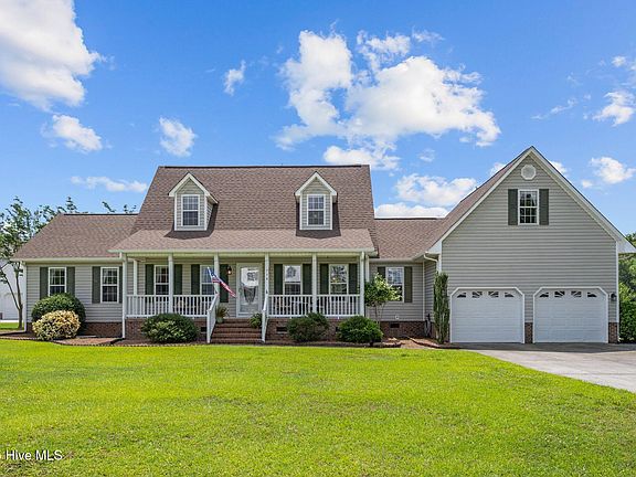 AMAZING WATERVIEWS of the New River! Live in highly sought after New River Plantation, a waterfront community that offers clubhouse, pool, boat ramp, dock and pier. Located close to the beaches of Topsail Island and the back gate to Camp Lejeune, this second row home offers over 2,400 SF of living space. Large Primary bedroom and en-suite bathroom on first floor, 2 more bedrooms, bathroom and large bonus room on the second floor. The home sits on a 3/4 acre lot! New roof and heat pumps in 2024! 2 yr old washer & dryer convey. The covered front porch is perfect for those rockers to view the New River. Best of all, the gated amenity area is within walking distance! Seller is offering $ 10,000 USE AS YOU CHOOSE!
