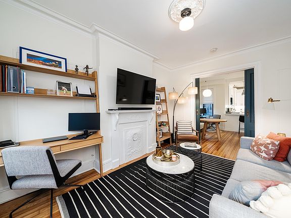Old world charm meets modern convenience in this meticulously renovated one bedroom condo located in the heart of Hoboken. Spacious open layout with living room, dining room, spectacular gourmet custom built kitchen with white cabinetry, quartz countertops and breakfast bar, stainless steel appliances. Additional updates and features hardwood flooring throughout, high ceilings, original moldings, updated bath with original tub and double sink vanity, split system AC and heat, large bedroom with washer/dryer. Common lush yard and additional basement storage complete the picture. All this located near New York City bus, Light Rail station, quaint pubs and restaurants.