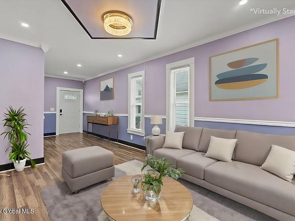 This updated home is move in ready, with an open floor plan, and a custom-built electric fireplace in the living room! The kitchen features white cabinetry, stainless steel appliances, and peninsula for extra counter space. 2 bedrooms and a full bath are conveniently located on the first floor along with a designated laundry room. Upstairs is complete with an updated bathroom and the large, private primary bedroom features a spacious closet. This home is a great investment opportunity with its proximity to Vale Park, Proctors, SUNY Schenectady and Union College!