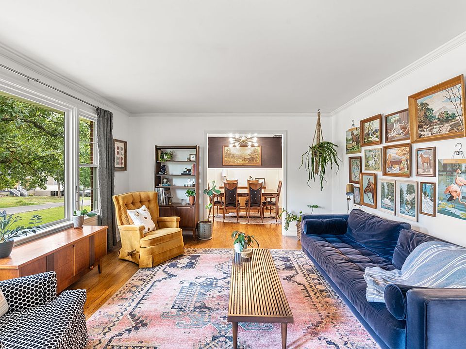 Welcome home to 715 Woodland Drive - a classic ranch-style home outfitted with incredible mid-century touches throughout! Primary Bathroom is highlighted by stunning snake wallpaper and was featured on "Vintage Bathroom Love!" Formal Dining + separate Den. Living room opens to Kitchen. Serene backyard on a sprawling .65 acre lot offers a concrete patio perfect for dining al fresco, new 6 foot privacy fence, gardens of veggies, fruits + an assortment of plants with tons of room for entertainment and activities. New windows, new HVAC and ductwork.
