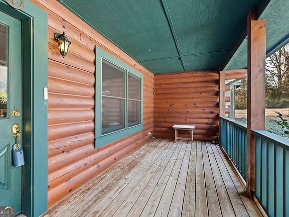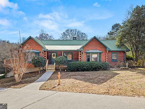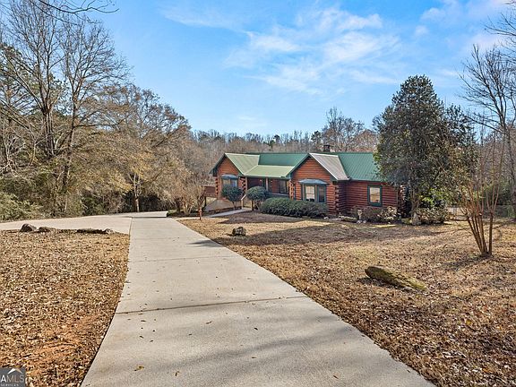 Tucked away on 20.35 wooded acres, this log cabin offers privacy, rolling hills, and peaceful natural surroundings. A long driveway leads to the home and provides a private setting. The home features one-level living with an unfinished basement. A covered front porch welcomes you home and creates a quiet place to slow down-ideal for rocking chairs and taking in the sounds of nature. The family room features a fireplace, wooded views, and double French doors leading to a covered porch/deck for outdoor living. The primary suite includes double French doors opening to a private deck-an ideal spot to enjoy the surrounding woods. The split-bedroom floor plan offers two additional bedrooms and a shared bath on the opposite side of the home. Eat-in country kitchen with pantry. Fenced backyard for children, pets, or everyday outdoor enjoyment. Mostly wooded with a small creek. Located just 2 miles from Interstate 85, this property offers the rare combination of privacy, acreage, and convenience-well suited for buyers seeking a full-time residence or private retreat with room to grow. This home offers a solid foundation for someone ready to make it their own.
