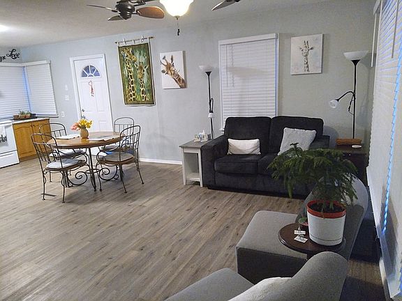 Newly updated. New open concept with wall between living room and kitchen removed. New Vinyl plank flooring through out the home. New sink, countertops and dishwasher in kitchen. New shower, vanity, sink, toilet, and lighting in both full bathrooms. Newly created laundry closet with new full size stackable washer and dryer. Electrical and plumbing all updated and up to code.