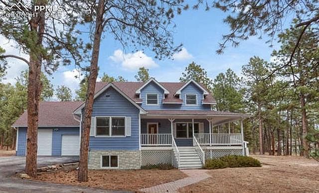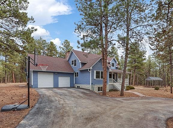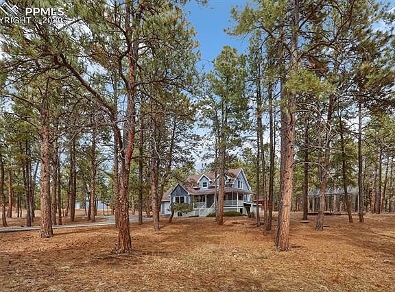 The perfect Black Forest home located on 5 beautiful treed acres zoned for horses! 5 bedrooms, 4 baths, oversized 2 car garage plus a 1200 sq ft detached Barn with a Hay Loft and large Work Shop! Great Location with easy access to Schools and Shopping! The barn has an attached pen that is ready-to-go for goats, ducks, or geese. Near the barn is a separate chicken coop with a large pen. Also an enclosed garden area & an "Invisible Fence" underground dog fence that encompasses the entire 5 acres. The main level interior boasts a separate dining and living room, and spare bedroom. The kitchen includes a pass-through bar, oak cabinets and large walk-in pantry. The family room features a wood burning fireplace and looks out onto the beautiful acreage. High-speed internet is already set up. The full basement was recently finished in 2017, and includes a rec room, media room, laundry & storage room, 2 bedrooms, and a full bath. Additional features include a welcoming circle driveway. District 20 Schools have convenient bus pick-up at the end of the driveway. The central location of this property means it's only 10 minutes to either Powers, Interquest, or Northgate! Short walking distance to Black Forest cafes and general store. The beautiful, serene setting surrounding this home includes stunning mature pine trees, a fire pit area, gazebo with hot tub, and barn with huge hay loft, all combining to make this a wonderful family retreat. The acreage offers great outdoor entertaining, a wonderful "play ground" for kids to grow up in, or can be used for simply relaxing and enjoying the quiet peacefulness of the forest that surrounds you. Welcome Home! (Possible Self Sufficient Living.)