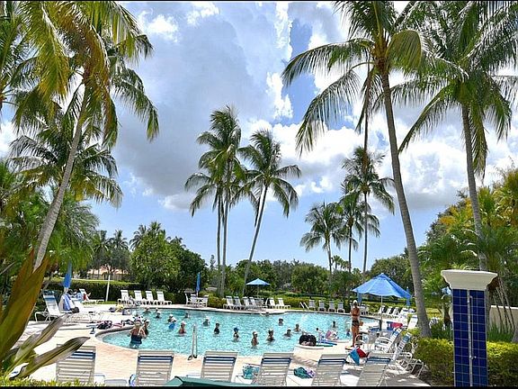 LOCATION! LOCATION! one-of-a-kind Oakmont fully renovated located with a plethora of upgrades on one of the most desired streets in Riverwalk of the Palm Beaches. This charming water view home is well appointed with extraordinary upgrades for entertaining. A gourmet kitchen with stainless steel appliances and dual flex oven, stunning granite counter tops, large kitchen island and dining area open to great room with 12 foot ceilings; finished terrace off kitchen with 18 feet of sliding glass doors; crown moulding and solid poly plantation shutters, ceiling fans in every room, manual hurricane storm screen and accordion shutters; electric drop storm screen between lanai and terrace; full screened enclosure; lovely den/office off foyer with 8 foot double entry doors; exclusive master suite with 8 foot double entry doors to suite with two sliding glass doors; his and her exclusive baths, Roman soaking tub, bidet, large walk in closet and three wall closets; two guest bedrooms with new carpeting, full guest bath with granite countertop, utility room with an abundance of cabinets, granite countertop, laundry tub and full size Samsung Washer & Dryer; Italian French pattern tile flooring in all rooms except bedrooms and partial living room; plantation shutters on all interior windows; crown molding and ceiling fans in all rooms; electric hurricane shutters; upgraded pineapple exterior lighting;; central vacuum system; outside security cameras; ring doorbell, keyless entry locks throughout. Plenty of room for a pool on the 2,139 sq. ft. lanai. Great value and fabulous location!