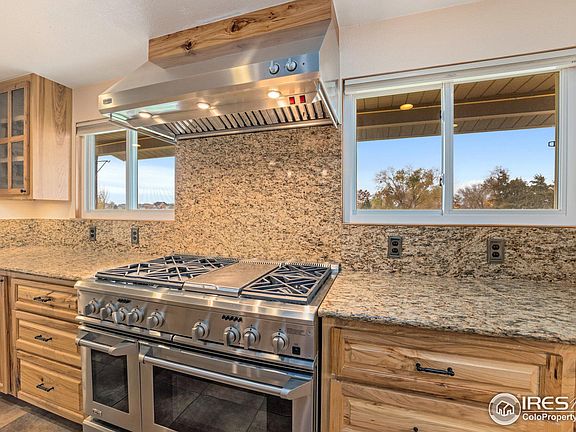 Close in Acreage with all the extras including an amazing upgraded kitchen w/chefs gas range, range hood, huge island, 2 pantries + eat-in dining room! Open & flowing floor plan w/large living room, office, massive primary bdrm w/5 piece ba & walk-in closet, 3 more bedrooms, sep laundry room, theater room w/all equipment remaining (rough-in for ba), rec room & unfinished lower level for room to grow! Amazing large 46x40 shop w/drive thru doors - 16x10 & 10x8 doors, rough-in for ba, 5-6 220 outlets, concrete floors, air compresor lines, electric heater. Beautiful back yard with wrapping deck and a patio. Home on Central Weld Co Water, but also has a sep well - well info attached to source of water disclosure. Home Warranty Included!