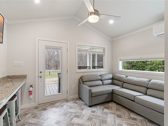 PREPARE FOR MAKING THOSE MEMORIES TODAY! This 2 bedroom - 1 FULL BATH vacation home is THE PLACE TO BE this summer to enjoy all LAKE BLUFF CAMPGROUND has to offer! The community amenities include TWO bathhouses- A HEATED POOL - playground- basketball court- volleyball court- miniature golf-and SO CLOSE to Lake Ontario (just one mile to Chimney Bluffs!) hiking, fishing, kayaking and MORE! The interior is a LUXURIOUS DREAM! With STAINLESS APPLIANCES-GRANITE COUNTERS with a cooktop- refrigerator- microwave-LUXURY VINYL PLANK FLOORING- MINI SPLITS to heat or cool - SPRAY FOAM INSULATION! There’s even additional RELAXING outdoor space, enjoy quiet morning coffee on the front porch! There’s also the opportunity to enjoy the NEXT SEASON (a $3400 VALUE) with your commitment to the Lake Bluff Community! Book your tour today! We’d LOVE to show you around!