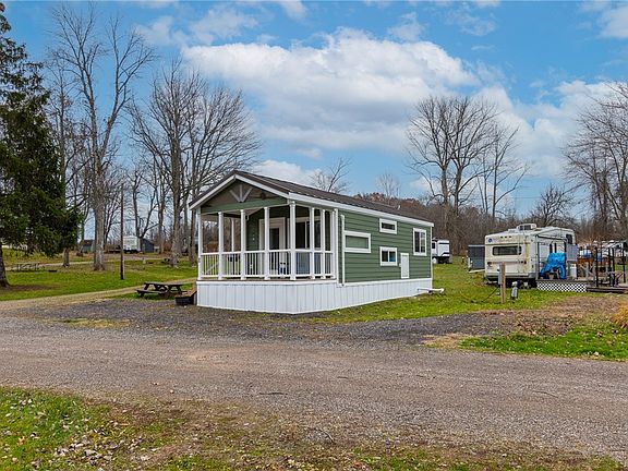 PREPARE FOR MAKING THOSE MEMORIES TODAY! This 2 bedroom (sleeps six or more!) - 1 FULL BATH vacation home is THE PLACE TO BE this summer to enjoy all LAKE BLUFF CAMPGROUND has to offer! The community amenities include TWO bathhouses- A HEATED POOL - playground- basketball court- volleyball court- miniature golf-and SO CLOSE to Lake Ontario (just one mile to Chimney Bluffs!) hiking, fishing, kayaking and MORE! The interior is a LUXURIOUS DREAM! With STAINLESS APPLIANCES-GRANITE COUNTERS with a cooktop- refrigerator- microwave-LUXURY VINYL PLANK FLOORING- MINI SPLITS to heat or cool - SPRAY FOAM INSULATION! There’s even additional RELAXING outdoor space, enjoy quiet morning coffee on the front porch! Right down the road you’ll find pontoon boat rental- fishing tackle and bait too (at the Bay Bridge Sport shop!) There’s also the opportunity to enjoy the NEXT SEASON (a $3400 VALUE) with your commitment to the Lake Bluff Community! Book your tour today! We’d LOVE to show you around!