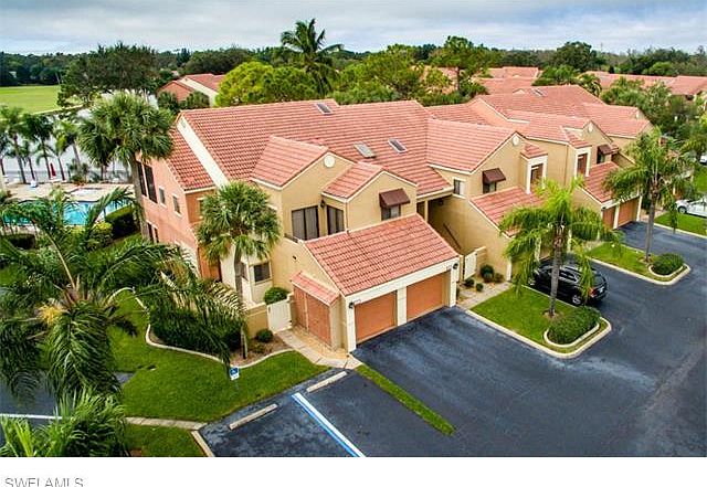 Just click above on Virtual Tour URL to see an aerial, interior and exterior video of the property. All you need to bring is your suitcase because this townhouse is offered TURNKEY and is recently, tastefully decorated with good quality furnishings and accessories. Located in the upscale, gated community of The Pines at Eagle Ridge a Country Club lifestyle without the Country Club fees. This corner, first floor, 2 bedroom, 2 bath, 1 car garage newly renovated town home is conveniently located in close proximity to the pool with both views of the lake and pool. Amenities include a public golf course (play without having to join the club), luxury pool, jacuzzi and restaurant. Renovations include new air conditioning, new electric , paint, kitchen cabinets, window treatments and laminate and tile flooring. The lanai and courtyard features interlocking stones for upscale dining and lounging. All of this and conveniently located off Daniels and a mile off I-75. Dinning room chandelier and some kitchen equipment as well personal items do not convey.