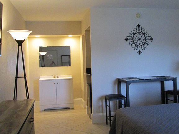 This is a privately owned waterfront condo suite located at 7150 N. Tamiami Trail, Sarasota, within the Ramada Inn. This newly renovated Sarasota Cay Club Waterfront Condo suite comes fully furnished which includes a new queen-sized memory foam bed, a new 50 inch smart tv with free cable and wi-fi, all utilities are included as well. For $899 a month (six month lease minimum, no exceptions) plus security deposit, tenants can enjoy the on-site exercise room, self-pay laundry room, heated pool, restaurant and tiki bar, and a range of activities that are just a short drive from the suite such as the Mote Marine Aquarium, the Ringling Brothers Museum, and the beautiful Siesta Key beach. It is also located just two miles north of the Sarasota-Bradenton International Airport. This is a no smoking/pet suite. Will be available on September 14th. Contact us now to rent the condo and live like you're on vacation! six month lease minimum. All utilities included.