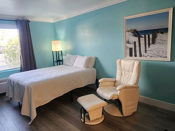 Experience a delightful stay in our privately owned hotel room at Ramada Inn. This renovated room offers a prime location right by the waterfront access. This unit has a kitchenette! Enjoy the heated pool area where a charming restaurant awaits, overlooking Sara Bay. Please note that the hotel accommodates other guests as well, and we have no control over their bookings. This room is located in front of Route 41 for perfect ease to enjoy Sara Bay and just minutes to Sarasota Bradenton international Airport we are just a short drive from beautiful white sandy beaches. PLEASE NOTE: THIS UNIT IS LOCATED IN HOTEL. HOTELS RULES MUST BE FOLLOWED. * 3 minute drive to SRQ airport *FREE parking also for trailers and U Haul with proof of reservation *Bay access *On-site restaurant * Heated pool *Gym *Cable TV Available now! Pets and ESA are NOT allowed. Only fully trained service animals allowed with prior knowledge. Property tours are only available for long term leases. Property can be rented for a minimum of 3 days at $100 per night plus cleaning and tax. Monthly rentals have a $50.00 utilities fee that covers all power, water, internet. Monthly rentals are $1400 from Now until end of October plus tax, cleaning and utilities fee. Renter is responsible for rent, taxes, and utilities fees of $50. No smoking allowed. Contract, first months rent, and security deposit due at time of signing. The rental rate listed is for a LONG term 7+. all rentals over 30 days have an HOA background check. The end of the tendency cleaning is $125.