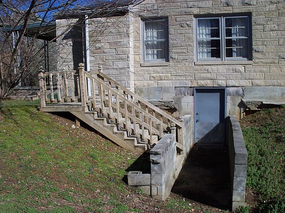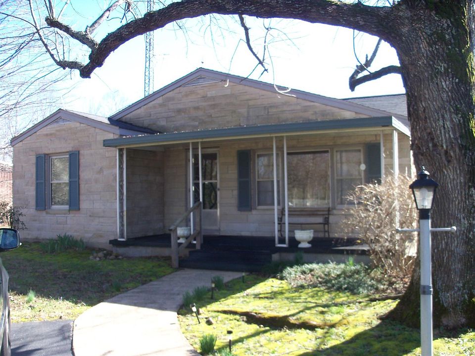 Bedford Stone Home with 60 acres of land with several acres joining the Corp of Engineers. Two bedroom, 1 bath, formal dining room, kitchen, sunroom/utility room, 2 car detached garage and unfinished basement. Second home on property 1 1/2 story with spring, also city water available. Home needs some work. Property has 60 acres with some of acerage having marketable timber. Close to State Park, Marina and dock.