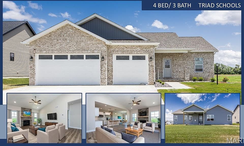 ABSOLUTELY ADORABLE! This stunning new construction in the heart of Glen Carbon blends modern charm with everyday comfort. Nestled within the Triad School District, this ranch-style home offers: an Open-concept floor plan with high ceilings, luxury flooring, soft neutral tones, and stylish accents throughout. The great room features a vaulted ceiling & a fireplace that makes for a beautiful focal point for the room. A gourmet kitchen boasts solid surface countertops, custom cabinetry, and stainless-steel appliances. 4 spacious bedrooms designed with natural light and thoughtful layouts as well as 3 beautifully appointed bathrooms featuring contemporary fixtures. The finished lower level features a large family room, the 4th bedroom & the 3rd full bath. Convenient location- close to Glen Carbon & Edwardsville amenities: shopping, restaurants, MCT bike trail & much more! With its location, graceful curb appeal and thoughtful craftsmanship, this home is move-in ready and perfect for those looking for style, space, and school district perks—all wrapped into one beautiful package