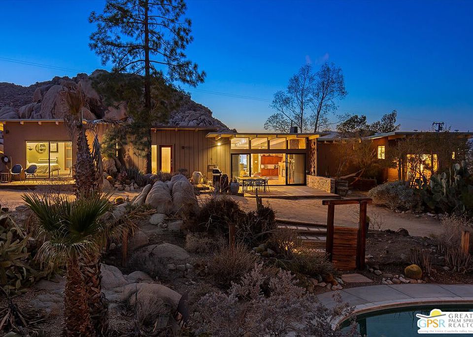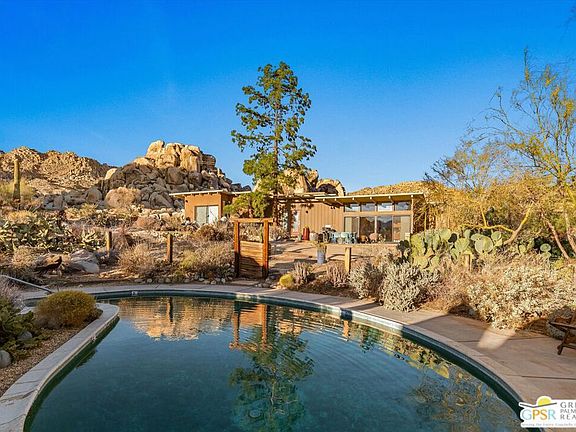 Rockbound Oasis Retreat is a stunning property located on the edge of the renowned Joshua Tree National Park. Tucked among the dramatic boulders that define this iconic landscape, it offers panoramic views of the desert and the expansive valley beyond. This exceptional compound includes a main house, a charming guest house as well as a pool and spa, all surrounded by a lush garden of desert plants and cacti. The main house features two bedrooms, two bathrooms, and a cozy den that currently serves as an additional bedroom. The one-bedroom guest house boasts its own kitchen, bath, and breathtaking views, making it perfect for visiting friends and family. In addition to the remarkable views, the property offers direct access to numerous hiking trails just steps from the door. Rich in history, the property was originally developed in 1954 by Helen and Everett Gray, pioneering figures in the post-war Joshua Tree community who played a key role in shaping the town and were instrumental in establishing the Hi-Desert Medical Center. Currently operating as a successful vacation rental, this unique oasis captures the spirit of Joshua Tree in an ideal blend of nature, history and modern comfort.