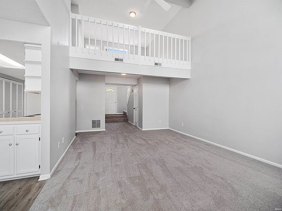 This is the Condo Community of Chadwick! Welcome to your serene oasis. This captivating 2-bedroom, 1.5-bathroom condo offers 1,298 square feet of unmatched comfort, style, and convenience. New carpet throughout and freshly painted walls add to the elegance and freshness of this condo. The welcoming cathedral ceiling great room, complete with a gas log fireplace and a wall of windows provides a warm and inviting atmosphere for movie nights or relaxing by a warm fire with your favorite book. Seamlessly connected to the dining area just off the great room you can indulge in your culinary passions in the bright and stylish kitchen. Your back patio is the ideal spot for unwinding after a long day or entertaining guests. Relax and unwind in the large master bedroom boasting oversized double windows and direct access to the full bath with new tub/shower surround. This is an end unit providing extra privacy with one car attached garage and driveway for off street parking. Easy access to I469 and Maplecrest, you can be anywhere in minutes.