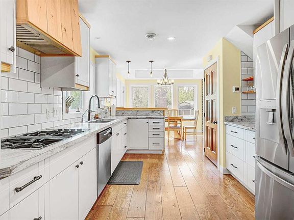 Main floor primary bedroomWood plank flooringLarge fenced garden areaStorage shedsFire pitFruit treesRaspberry bushes
