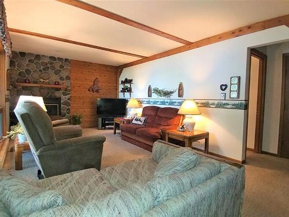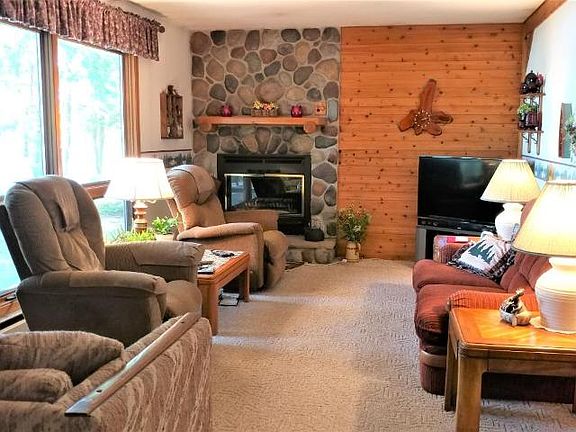 Awesome sunsets, west facing, level lot, 170' of sandy frontage, clear lake. How does it sound so far? The house has 2 BR/1 BA with a large finished rec room downstairs that could be used as additional sleeping quarters. The basement has walkout access. A fireplace in the living room and a wood burning stove in the basement. The 10'x32' deck and the large windows in the living room present a picturesque view of the lake and surrounding nature. A large garage provides room to store the toys. The well maintained house has served as the full time residence for the current owners for the past 24 years, being turn key it will allow for leisure time as soon as you move in. Pride of ownership shows with the well kept home and grounds. Located between Rhinelander, Eagle River, and St. Germain. Sugar Camp puts you in the heart of the Northwoods activity. Snowmobile, atv, biking, and hiking trails nearby. The motivated seller is including small fishing boat & furnishings negotiable.