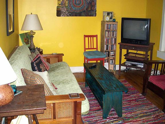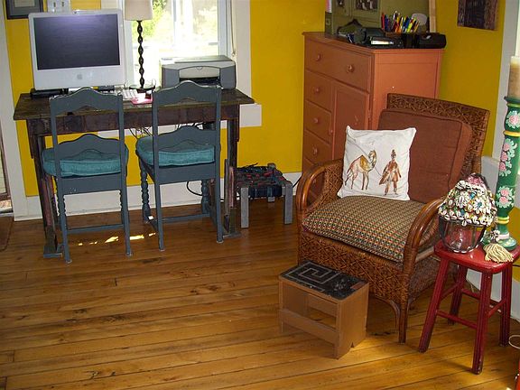 This old farmhouse has been lovingly transformed into a charming comfortable home in a lovely setting. The small barn across the street is used as a mini gym, studio and storage. There is also a nature trail that winds through the woods on the barn side of the road. On the house side is a meandering stream with a special spot for sun bathing while listening to the soothing sounds of the water. Every bit of the house has been carefully utilized for comfort and beauty.