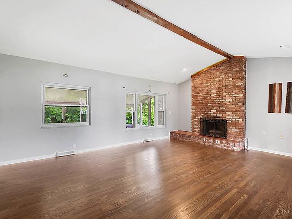 Don't miss your opportunity to own 3/4 of an acre on Dimmick Rd! This sprawling 3 bed, two full bath home features refinished hardwoods and a beautiful vaulted ceiling with stone fireplace in the living room. The kitchen is light and bright with granite counters and walks out to a screened/covered back patio overlooking a spacious tree lined back yard. Enjoy storage and bonus areas in your full basement. Come and put your finishing touches on this charming ranch!