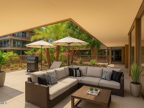 Rare corner unit at exclusive Optima Camelview, offering one of the largest 2-bed/2-bath floor plans. This unique home stands apart with a massive private terrace (~over 1,600 sqft total outdoor space) that's one of a kind, recently granted architectural approval for direct access from the main living space, with contractor's estimate available. This coveted approval creates seamless indoor/outdoor living, elevating #4001 into a league with homes priced far above this range. At $579/sqft, it's priced well below recent sales, making it by far the best value on the market — whether you're seeking move-in ready luxury or a quick-turn investment with upside. Includes two garage spaces and full access to Optima's resort-style amenities.
