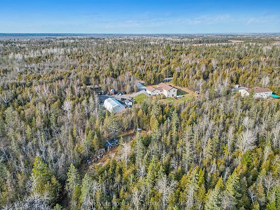 Beautiful 2010 custom side-split set on a private 4.3-acre treed lot, offering a bright, well-designed home with the added benefit of an insulated and heated 35' x 100' heated and insulated shop with automatic garage door opener that significantly enhances the overall value and versatility of the property. The home has been thoughtfully configured into two self-contained units, currently rented at $2,100 and $2,500 per month. The layout offers excellent flexibility-ideal for those looking to live in the home while continuing to rent a portion, or for buyers seeking strong interim income-with the space easily adapted back to its purpose-built single-family use. The upper unit features open-concept living filled with natural light, large windows, custom wood kitchen cabinetry, an oversized island with breakfast bar, pantry storage, hardwood and ceramic flooring, three bedrooms, a spacious full bath with dual sinks, and in-unit laundry. The lower-level walkout unit offers full above-grade windows with walkout basement, a private entrance, living room, kitchen, laundry, two bedrooms plus den, full bath, tile flooring, and radiant in-floor heating. All appliances included. The heated shop is ideal for trades, storage, or hobby use and represents outstanding supplemental value alongside the home, with potential for additional income. Surrounded by acreage with nearby trail access, the property offers privacy, space, and long-term versatility. A rare opportunity combining a newer home, acreage, income potential, and an exceptional shop at an attractive price point.