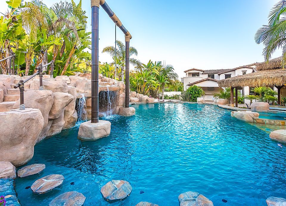 - Pool features: Private, Heated, Gunite, See Remarks, Waterfall, Fenced, Solar Heat